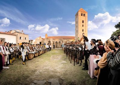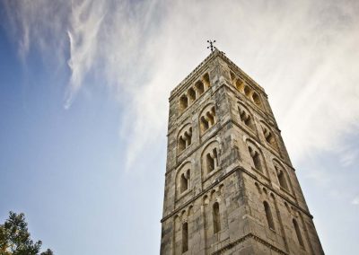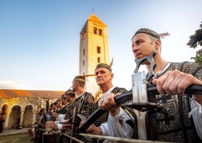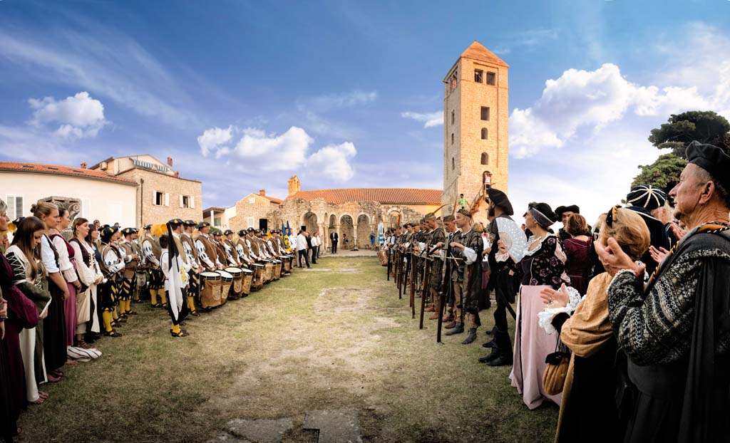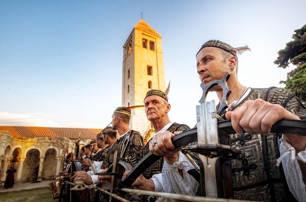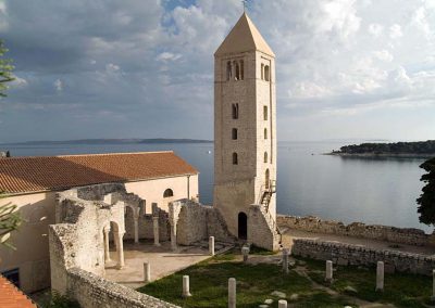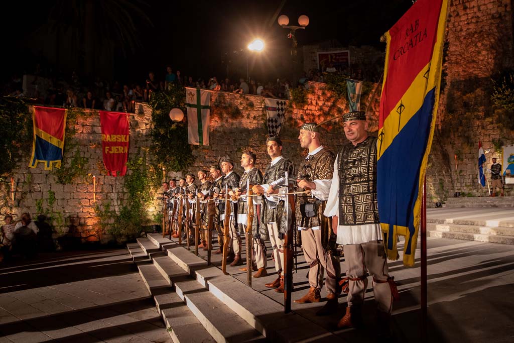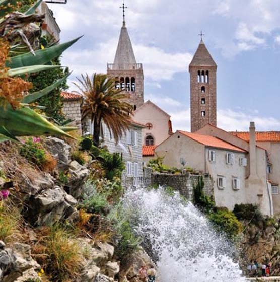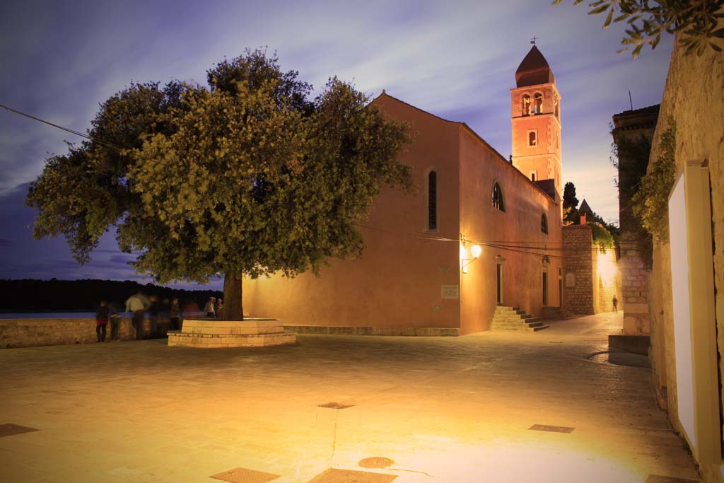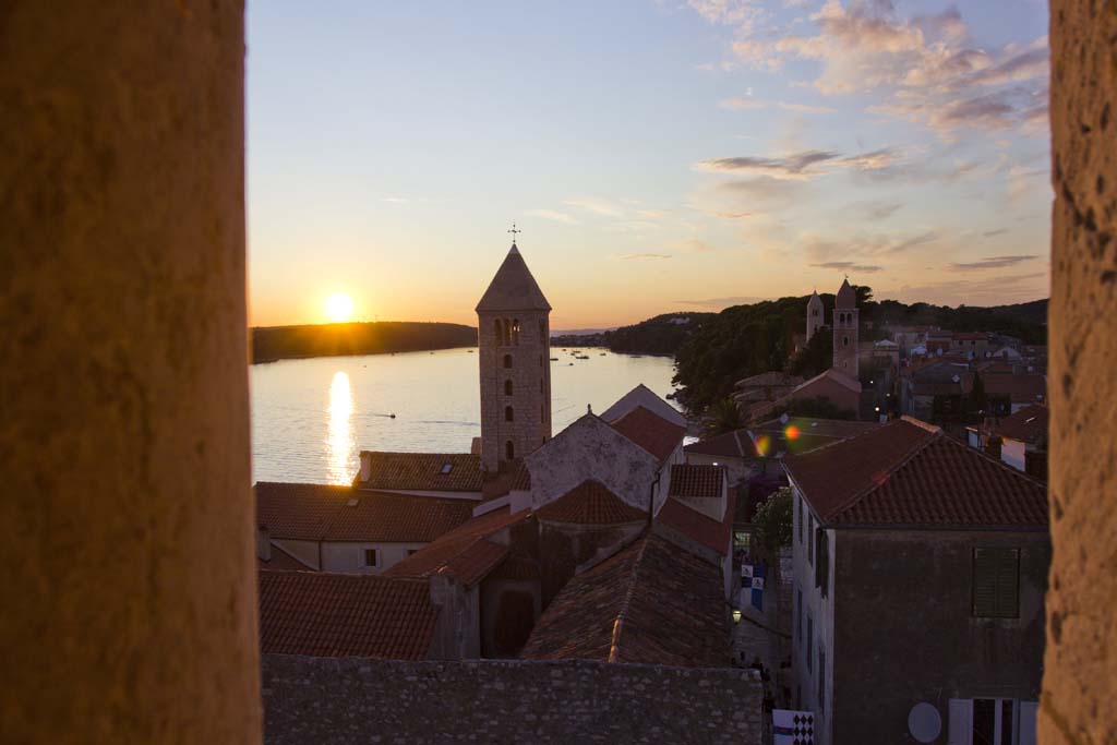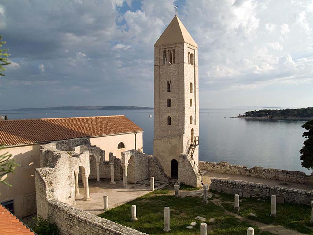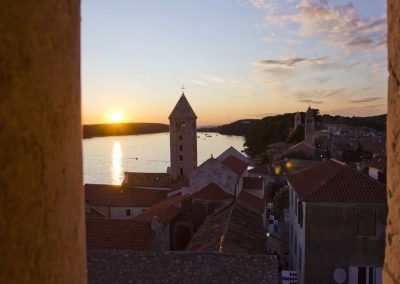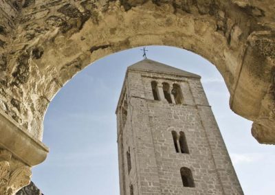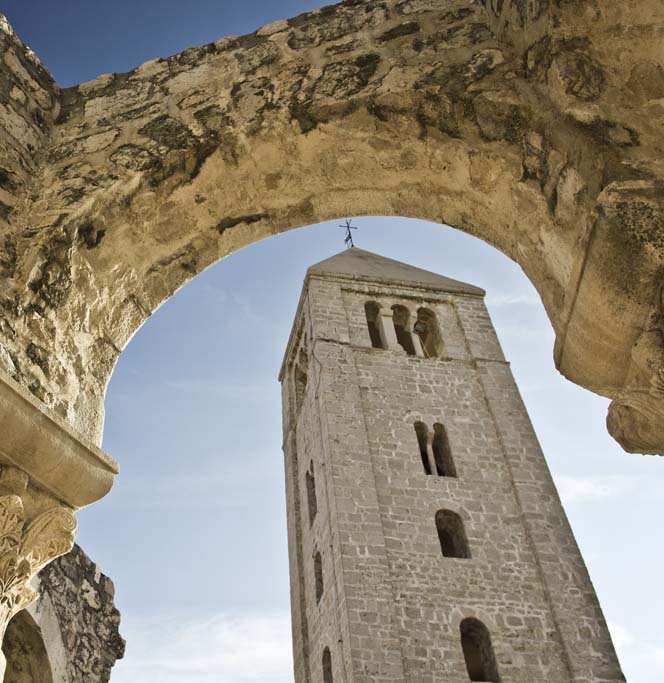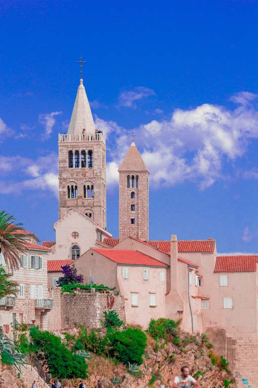 Stara gradska jezgra ima svoju svjetski prepoznatljivu vizuru sastavljenu od četiri zvonika koji zapravo predstavljaju četiri različita godišnja doba a njihova visina ujedno je i prosječna temperatura zraka u tim istim godišnjim dobima. Kolika je zapravo povezanost arhitekture iz tog doba i prolaznosti vremena svjedoči da je jezgra starog grada podijeljena na četiri glavne ulice Riva, Donja ulica, Srednja ulica i Gornja ulica a one su pak “ispresijecane” s 12 manjih uličica koje označavaju 12 mjeseci unutar 4 godišnja doba. Također, od 25.7. do 27.7. prostor starog grada središte je najveće srednjovijekovne kulturne manifestacije – Rabske fjere !