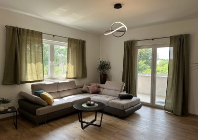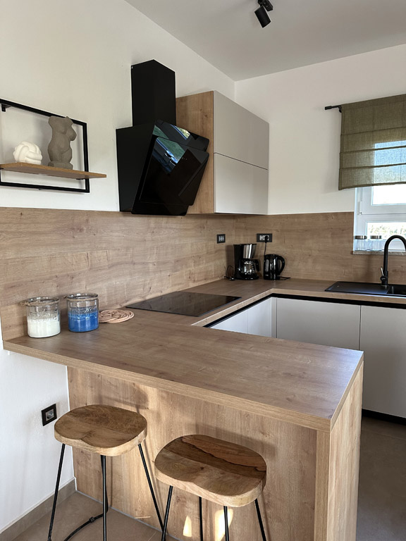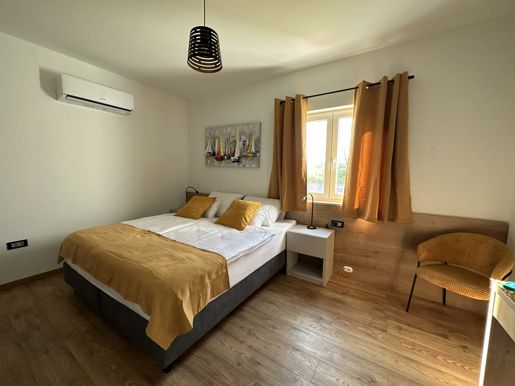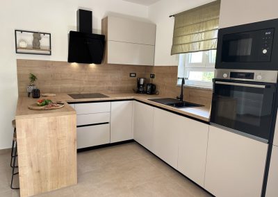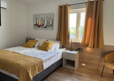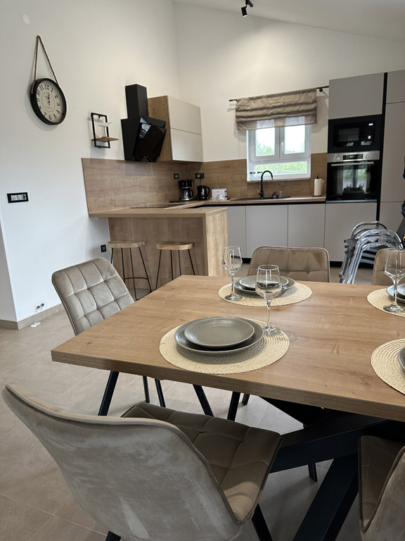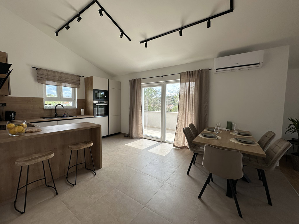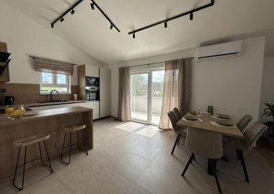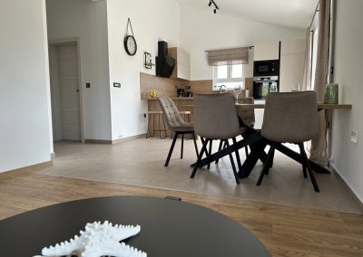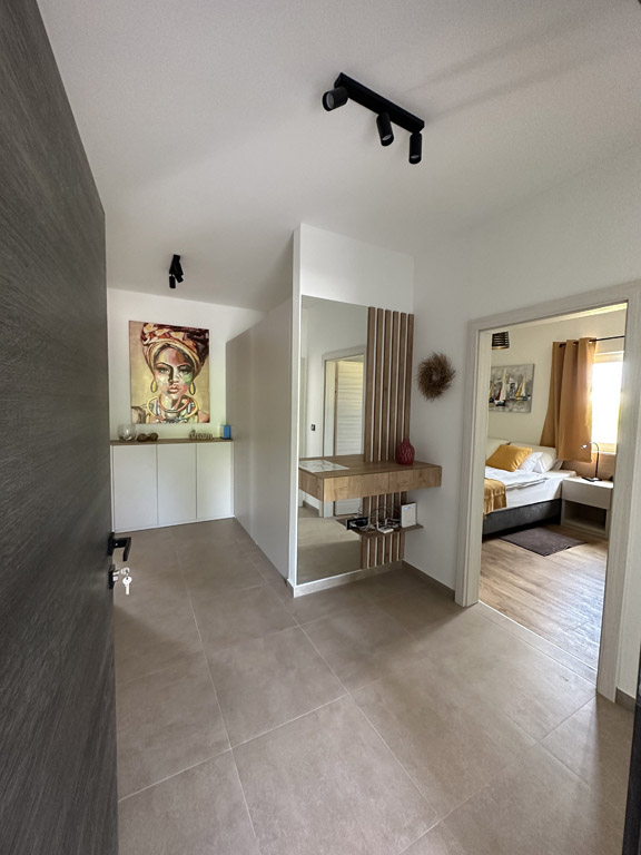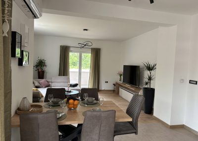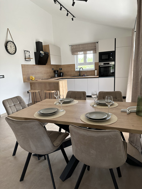 Sigurni smo da ćete svoj odmor većinom provesti uz bazen, ali isto tako smo sigurni da ćete uživati u interijeru vile. Unutra ćete pronaći elegantno namješten interijer koji odiše udobnošću i sofisticiranošću. Vila se sastoji od 2 odvojena stana koji su povezani stubištem. U prizemlju ćete pronaći apartman s dvije luksuzno opremljene spavaće sobe, od kojih je svaka utočište mira, osiguravajući miran san, dvije kupaonice, udoban dnevni boravak okupan prirodnim svjetlom, stvarajući topao i privlačan ambijent, te potpuno opremljenu moderna kuhinja koja ispunjava vaše kulinarske želje i omogućuje vam pripremu ukusnih jela u kojima ćete uživati u blagovaonici. Na prvom katu nalazi se još jedan stan sa svijetlim dnevnim boravkom i modernom kuhinjom te dvije spavaće sobe i dvije kupaonice. Apartman također ima terasu na kojoj možete uživati u zalascima sunca u večernjim satima i popiti kavu na suncu ujutro.