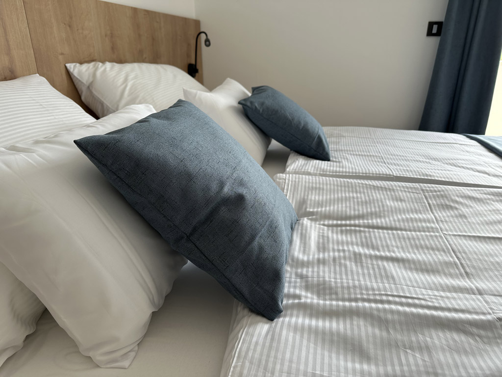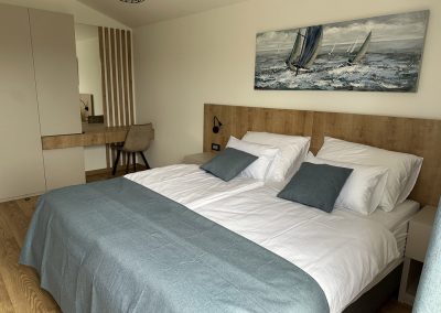 Moderan, potpuno klimatiziran interijer je otvoren i svijetao. Svaka spavaća soba ima TV i klima uređaj za maksimalnu udobnost.